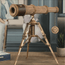 Charakteryzujący się wyrazistą strukturą, ten zabytkowy teleskop zawiera wysuwany wspornik dla dodatkowej funkcjonalności.