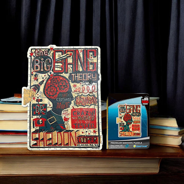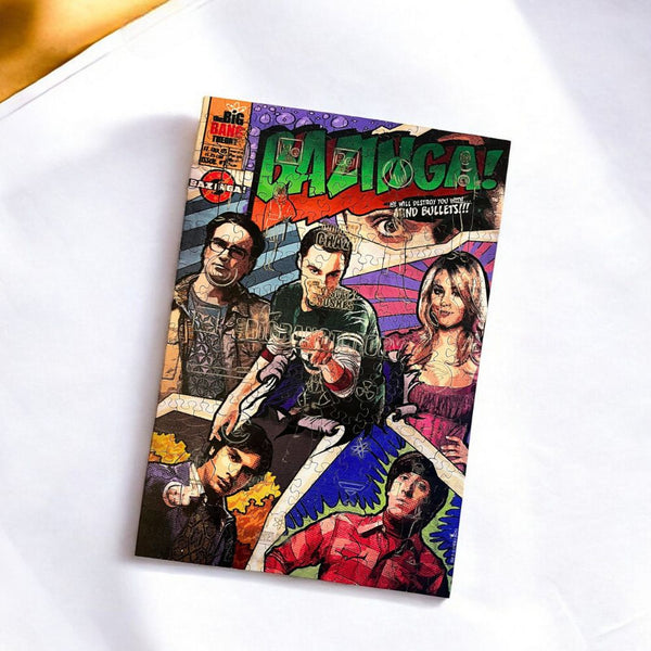 Uczcij błyskotliwość serialu za pomocą puzzli o unikalnych kształtach, takich jak Sheldon, Penny, nici DNA, kultowa kanapa, elementy naukowe, dymki Bazinga i nie tylko.