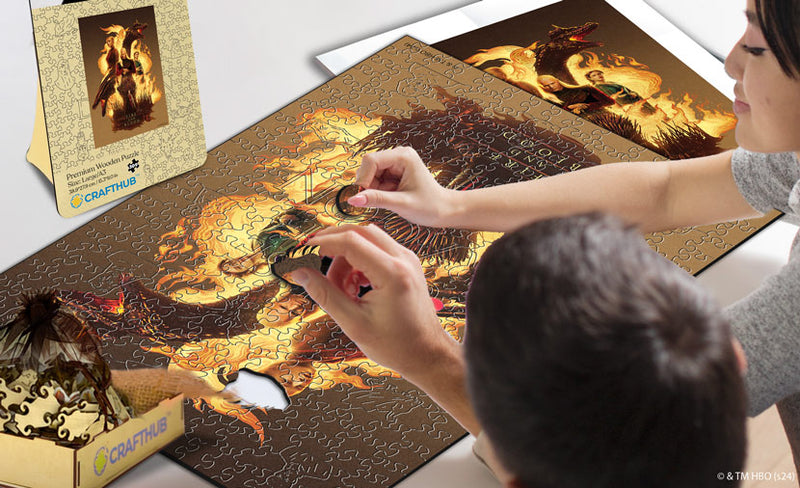 Ta seria puzzli, zawierająca oryginalną grafikę pochodzącą bezpośrednio z filmowego źródła epickiej sagi, celebruje połączenie autentycznych ilustracji z "Rodu smoka" z najlepszym kunsztem tworzenia puzzli.