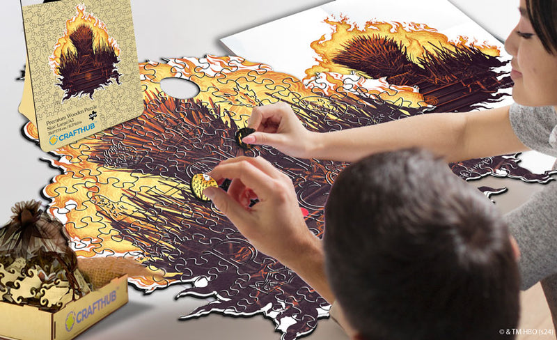 Ta seria puzzli, zawierająca oryginalną grafikę pochodzącą bezpośrednio z filmowego źródła epickiej sagi, celebruje połączenie autentycznych ilustracji z "Rodu smoka" z najlepszym kunsztem tworzenia puzzli.