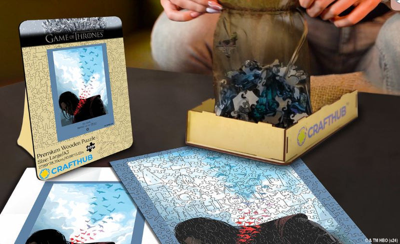 Ta seria puzzli, zawierająca oryginalną grafikę bezpośrednio z filmowego źródła epickiej sagi, celebruje połączenie autentycznych obrazów z "Gry o tron" z najlepszym kunsztem tworzenia puzzli.