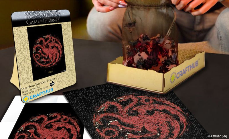Ta seria puzzli, zawierająca oryginalną grafikę bezpośrednio z filmowego źródła epickiej sagi, celebruje połączenie autentycznych obrazów z "Gry o tron" z najlepszym kunsztem tworzenia puzzli.