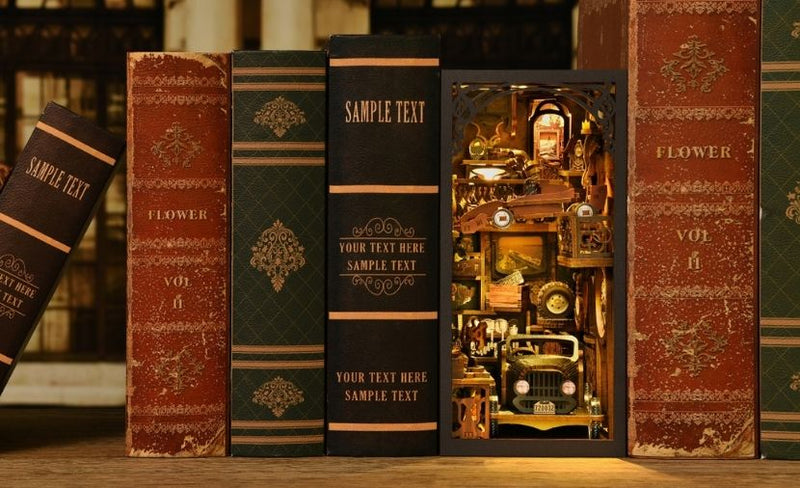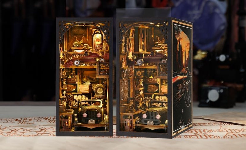 Gracze samochodowi, stylizowany na klasyczną książkę w twardej oprawie, po otwarciu ukazuje szczegółowy raj dla mechaników — idealny do dekoracji półki, gabinetu lub warsztatu.