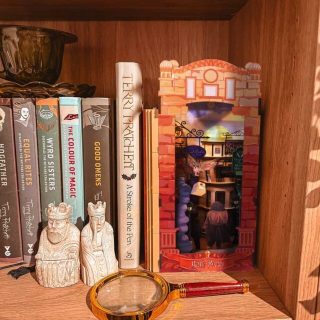Uwielbiam, jak ta makieta ulicy Pokątnej ożywia czarodziejski targ. Drobne szczegóły sprawiają, że naprawdę czuję się, jakbym spacerowała po magicznej uliczce. To doskonały dodatek do mojej biblioteczki.