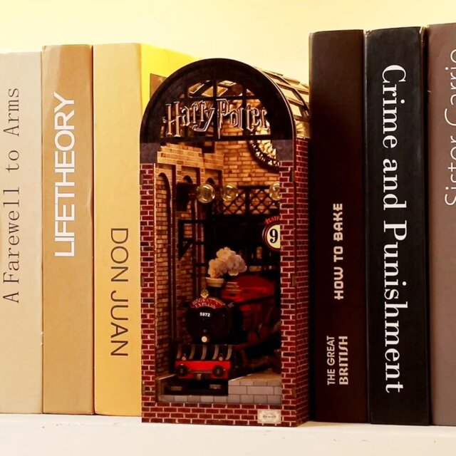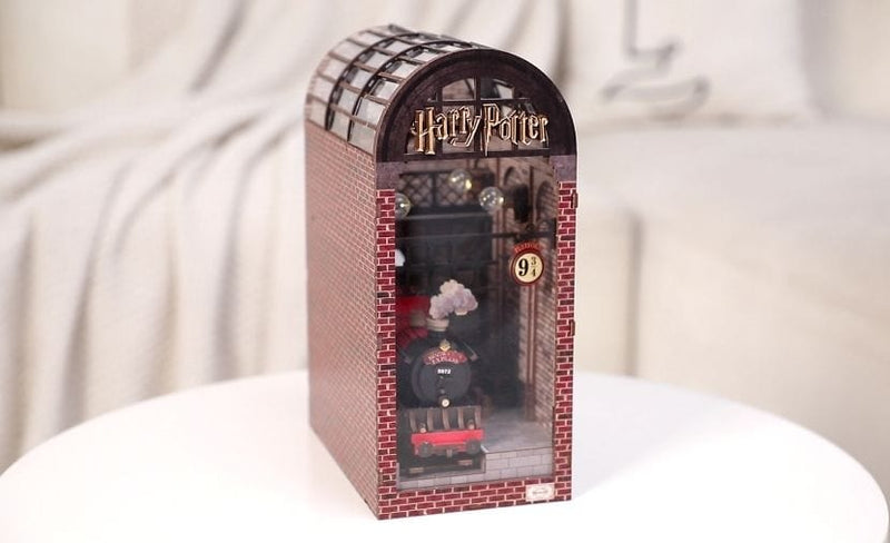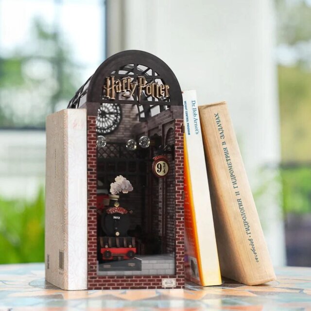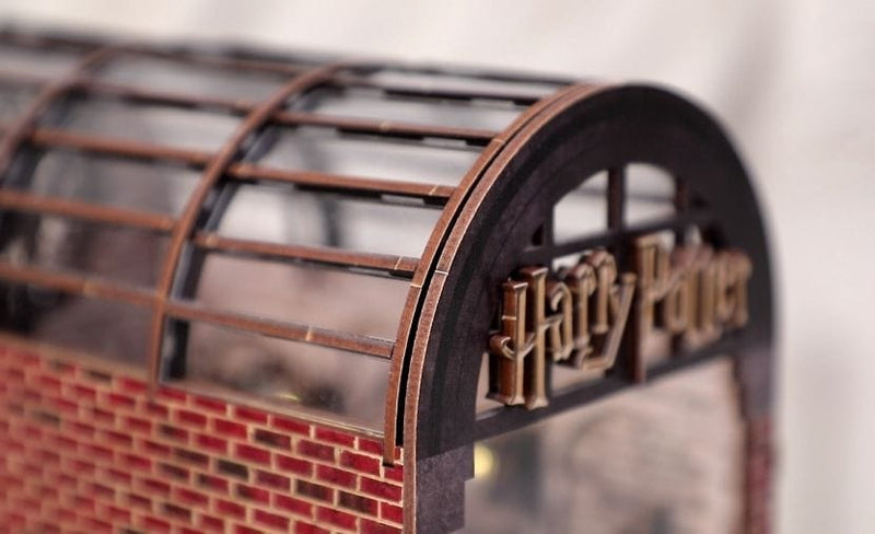 Szklany, łukowy dach i złote logo „Harry Potter” oddają wielkość stacji King's Cross. Każdy element jest wykonany z precyzją, przekształcając ten kącik biblioteczny w oszałamiającą ekspozycję architektury świata czarodziejów.