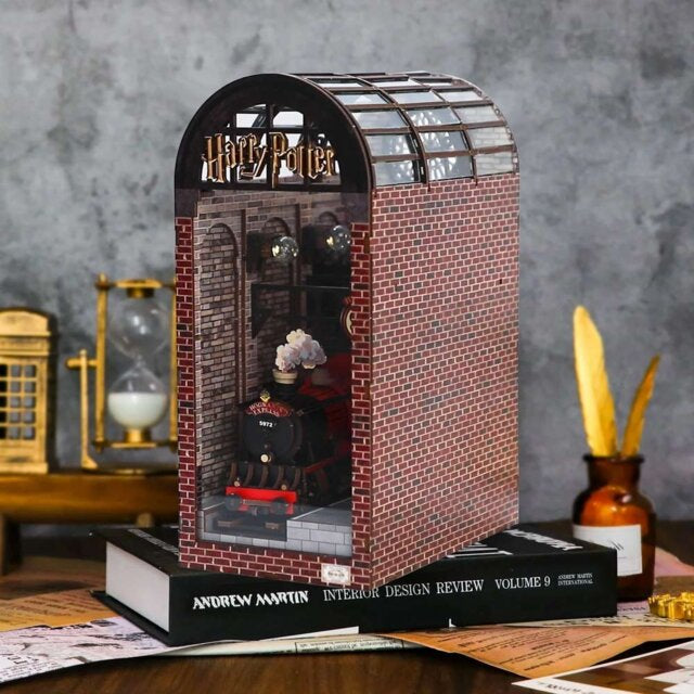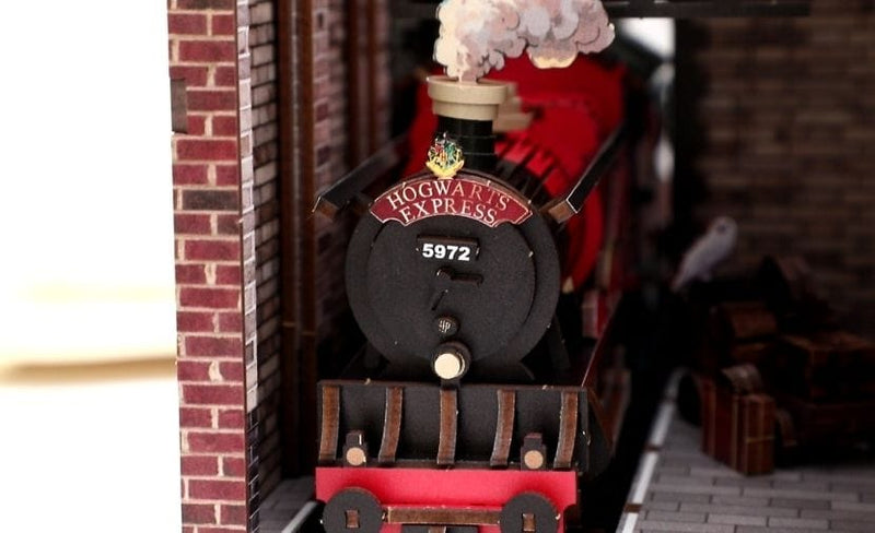Ten kącik biblioteczny został zaprojektowany z dbałością o najdrobniejsze szczegóły, od realistycznych ceglanych ścian po miniaturową lokomotywę i efekt dymu, dzięki czemu moment wejścia do Ekspresu Hogwart jest naprawdę realistyczny.